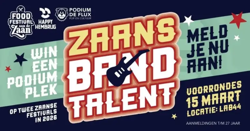 Podium DE FLUX, Zangstudio Tarah en het Foodfestival aan de Zaan slaan dit jaar de handen ineen om jong, lokaal talent in de spotlight te zetten door middel van een talentenjacht, waarbij deelnemers kans maken op die felbegeerde podiumplek tijdens Foodfestival aan de Zaan én Happy Hembrug op zaterdag 6 september!