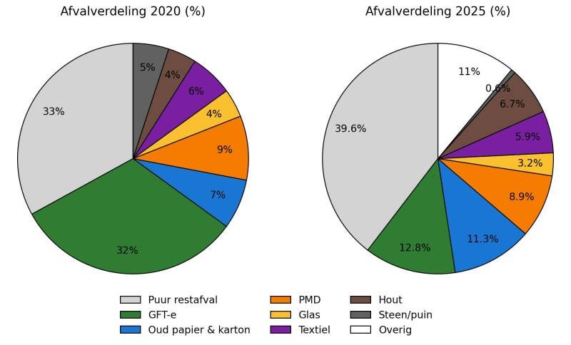 De eerste resultaten laten een bemoedigende verschuiving zien. Uit de meest recente cirkeldiagrammen blijkt dat de samenstelling van ons afval de afgelopen jaren is veranderd; we scheiden ons afval simpelweg steeds beter. Dit is een compliment aan de inwoners, aangezien een betere scheiding direct bijdraagt aan een efficiënter verwerkingsproces.